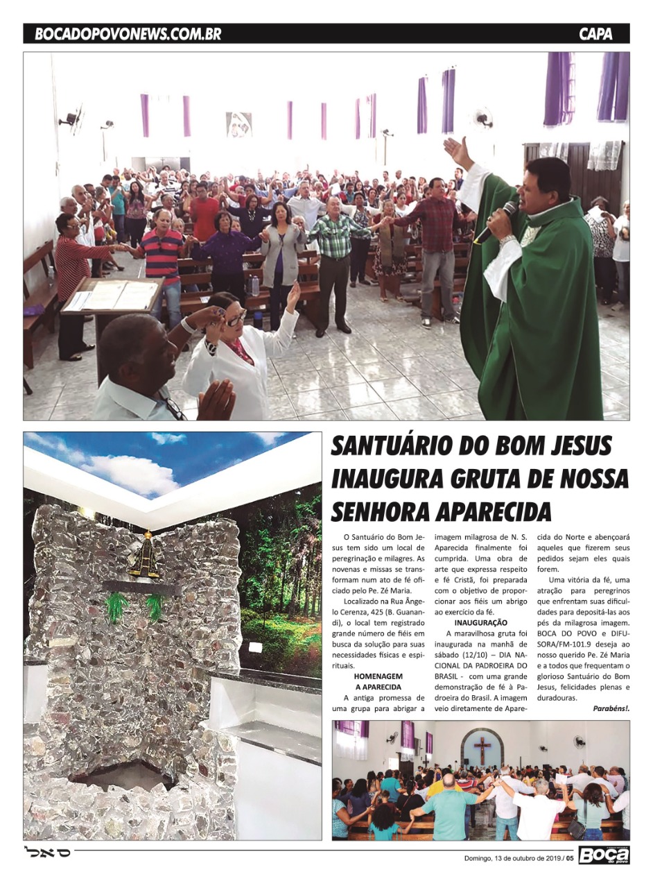 INAUGURAÇÃO DA GRUTA MILAGROSA DE NOSSA SENHORA APARECIDA